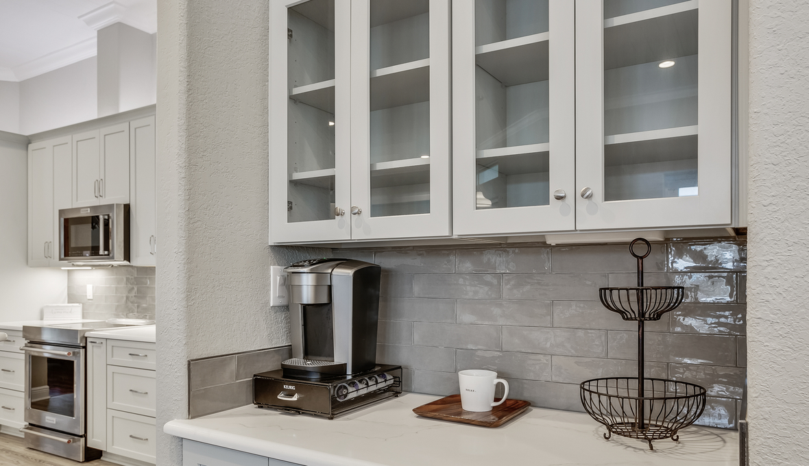 During the kitchen renovation, the homeowner opted to make a few design changes. This included aesthetic requests, a drop-down vanity backsplash, a coffee bar backsplash, and changes to the cabinet doors. While these project variations added to the project’s cost, they contributed to the quality and personalization of the final result.