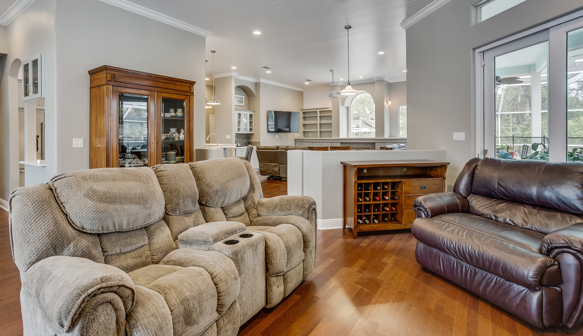 Careful project management was essential in this bathroom, kitchen, and living room renovation in Pensacola, Florida. A Refresh Renovations consultant worked with the homeowner to personalize the home’s most used areas. Originally, the master bathroom featured emerald green tiling with gold accents. The kitchen was outdated and the living area was in need of modernization.