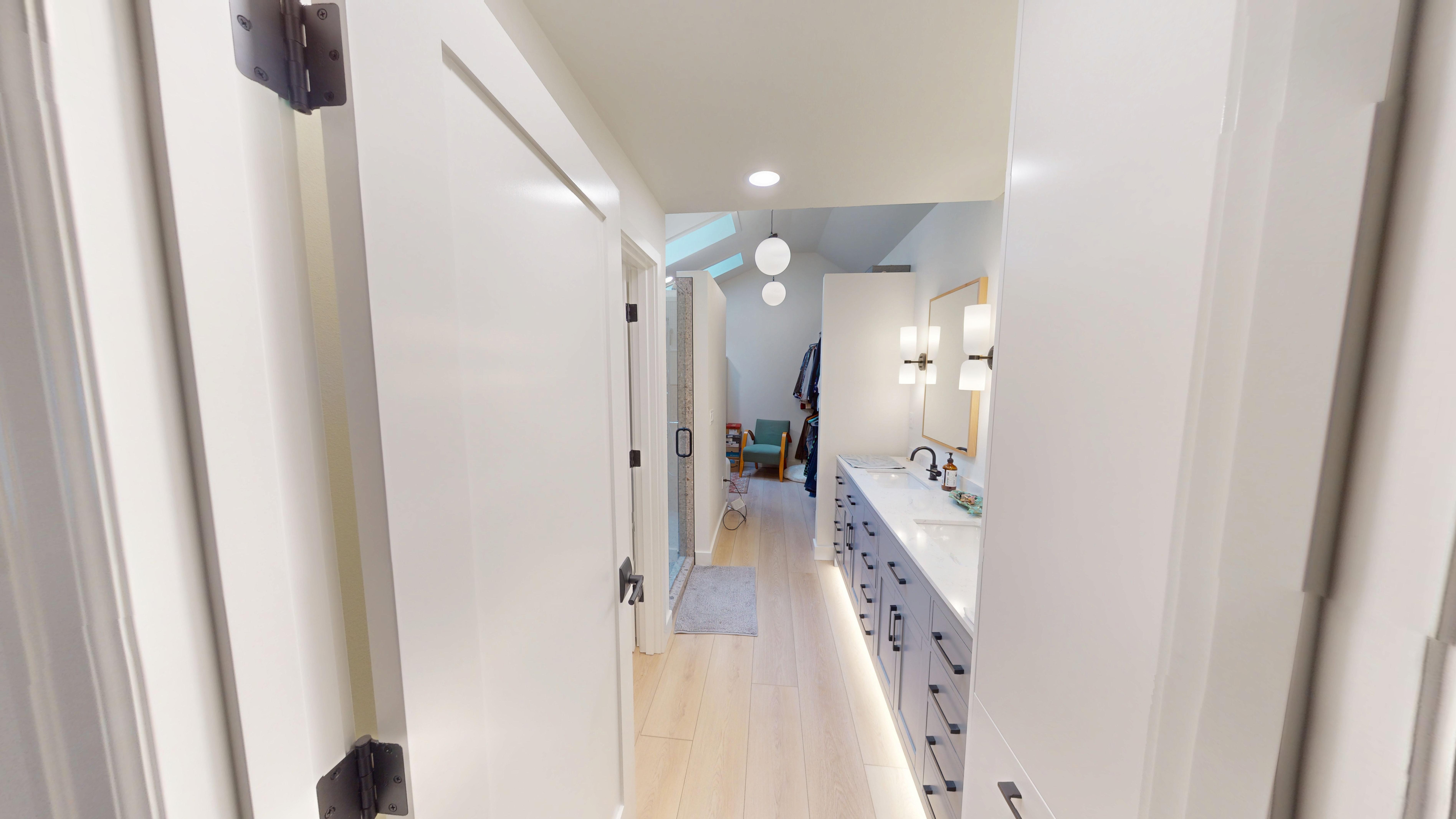 On the second floor, the remodel of the bathroom included the addition of a dormer, which not only expanded the master closet but also allowed for a much larger primary bathroom. This thoughtful design choice not only increased the usable space but also enhanced the overall functionality and comfort of the room. The expanded master closet now offers ample storage for clothing and accessories, while the larger primary bathroom provides a more luxurious and relaxing space, complete with modern fixtures and ample natural light from the new dormer window.
