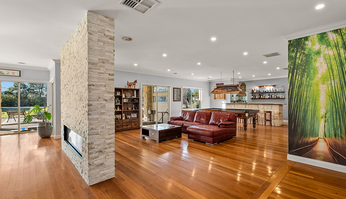 Leigh’s designer delivered a beautiful concept that ticked all the boxes for Katrina. The main living area would be opened up, with a fireplace wall separating the kitchen from the lounge and recreation areas. Tired bathrooms would receive modern makeovers, rooms would be refreshed, and – every child’s (and adult’s) dream– a theatre room would be created.