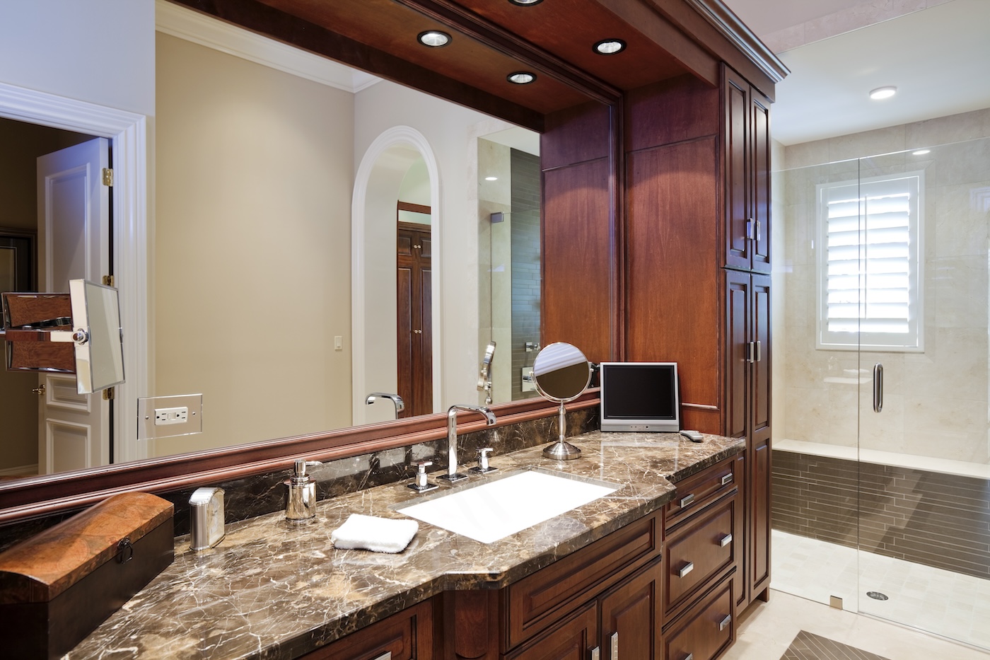One of the most popular bathroom remodel ideas in The Woodlands-Spring at present is a small bathroom remodel. This can be the remodel of a second bathroom in a family home or the remodel of the only bathroom in an apartment dwelling. And, when it comes to small bathroom remodeling projects, our remodeling consultants know how to get results. It’s all about maximizing space and utilizing features such as lights, shelving, mirrors, and showers to create a sense of spaciousness. Additionally, increasing counter space is crucial for enhancing both functionality and storage in small bathroom remodels.