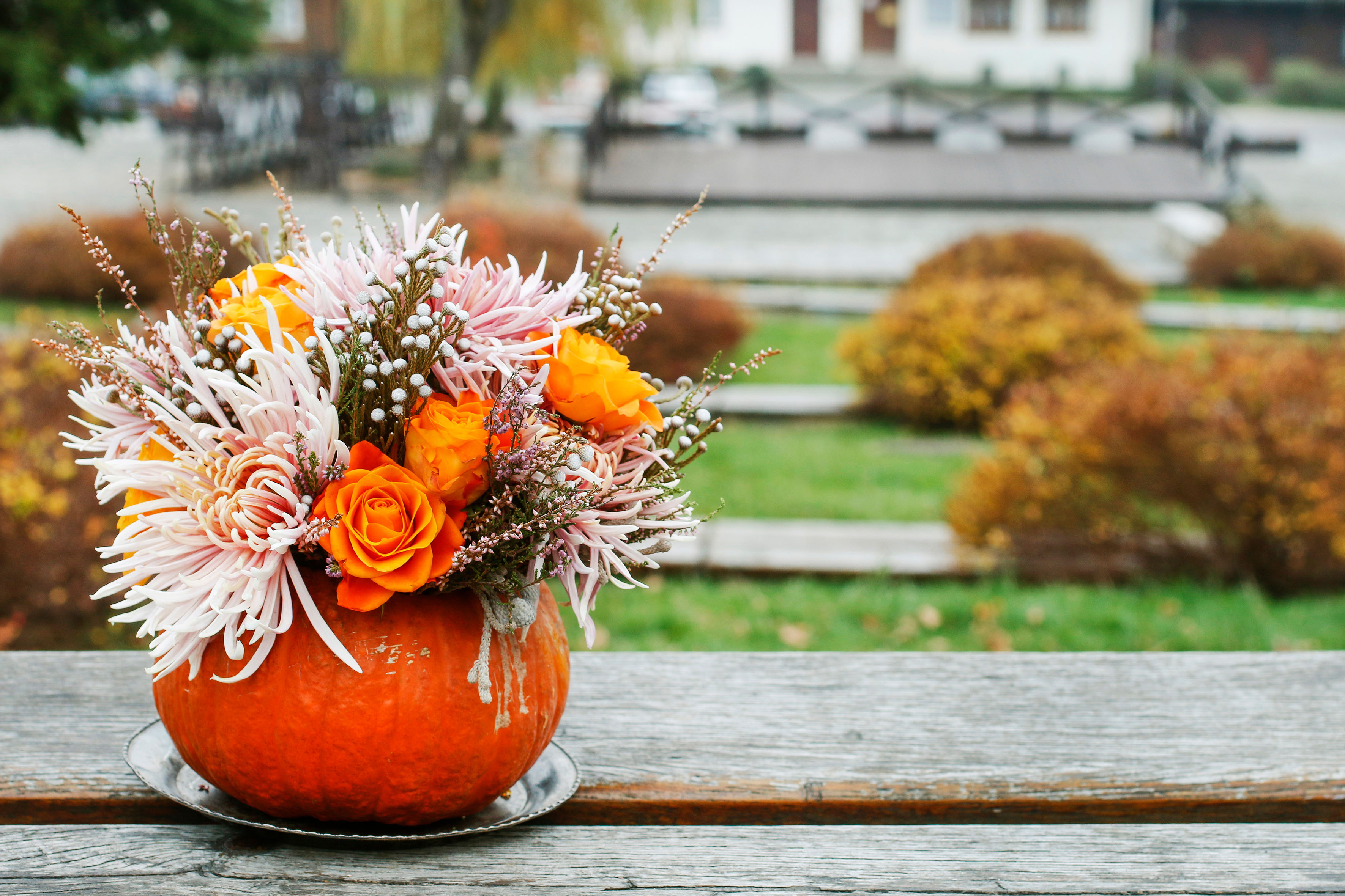 What says Thanksgiving more than a pumpkin? Keep it simple and select a few pumpkins of different shapes and sizes for a centerpiece. If you want to elevate the pumpkin, carve and clean out the pumpkin to make a ‘pumpkin vase’ for flowers.